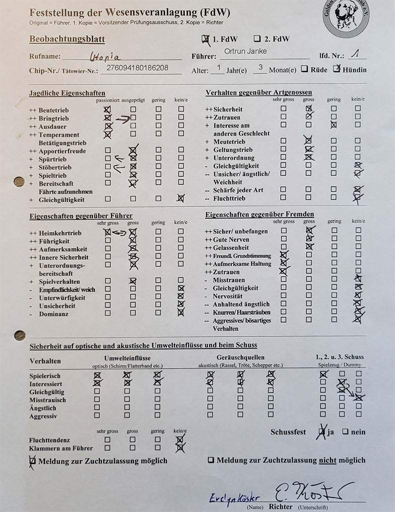 Vielen Dank an Silke und Lutz Homann für das Vertrauen, mir diese tolle Hündin zu überlassen.